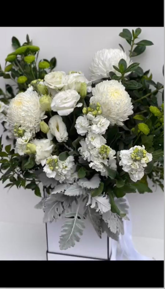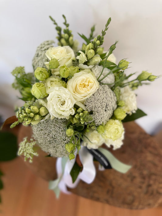 Rounded Posy of Seasonal Mix Flowers & Greenery in Vase