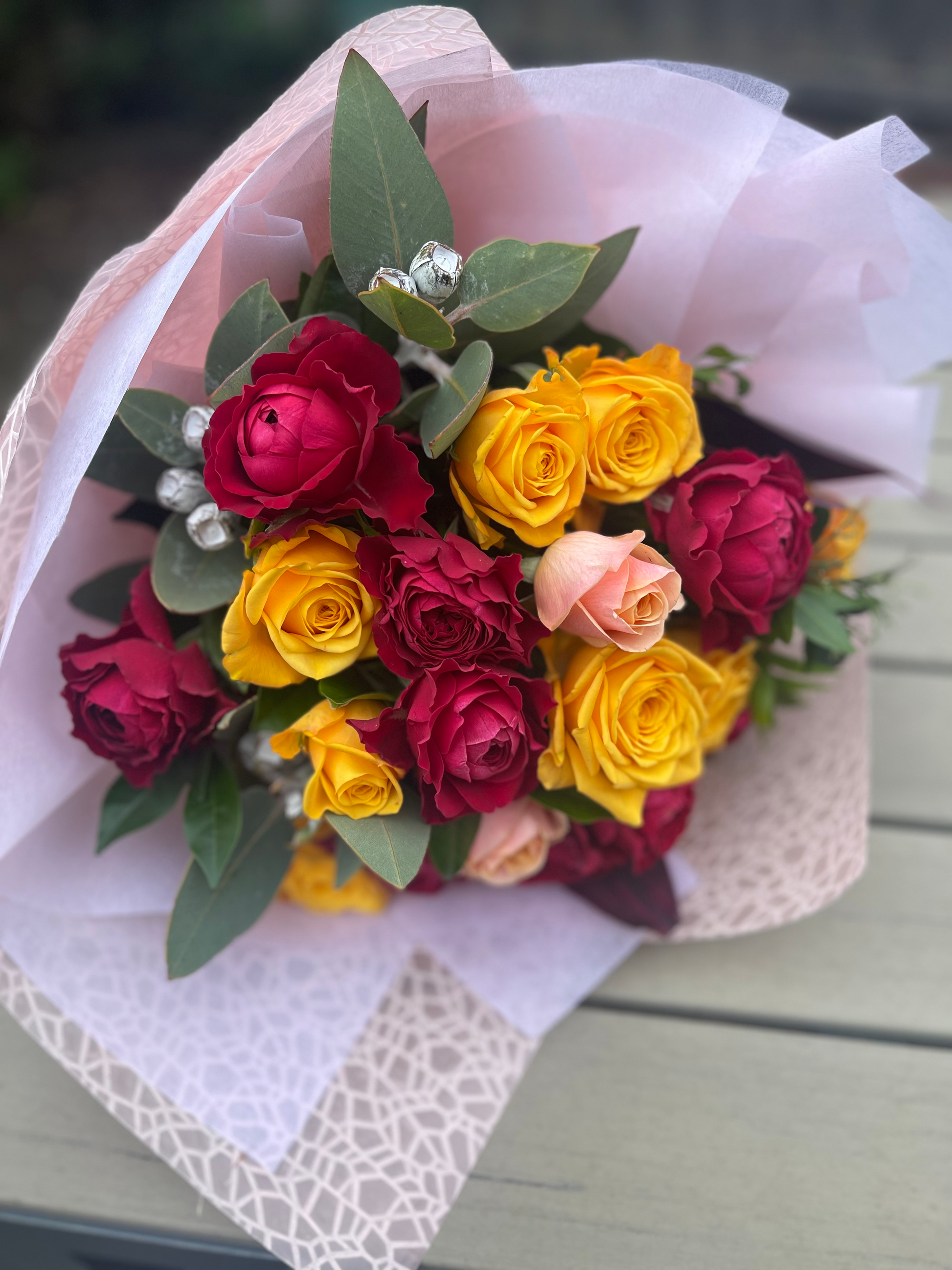 Spoil someone special with a beautiful bouquet of exquisite premium roses and foliage .